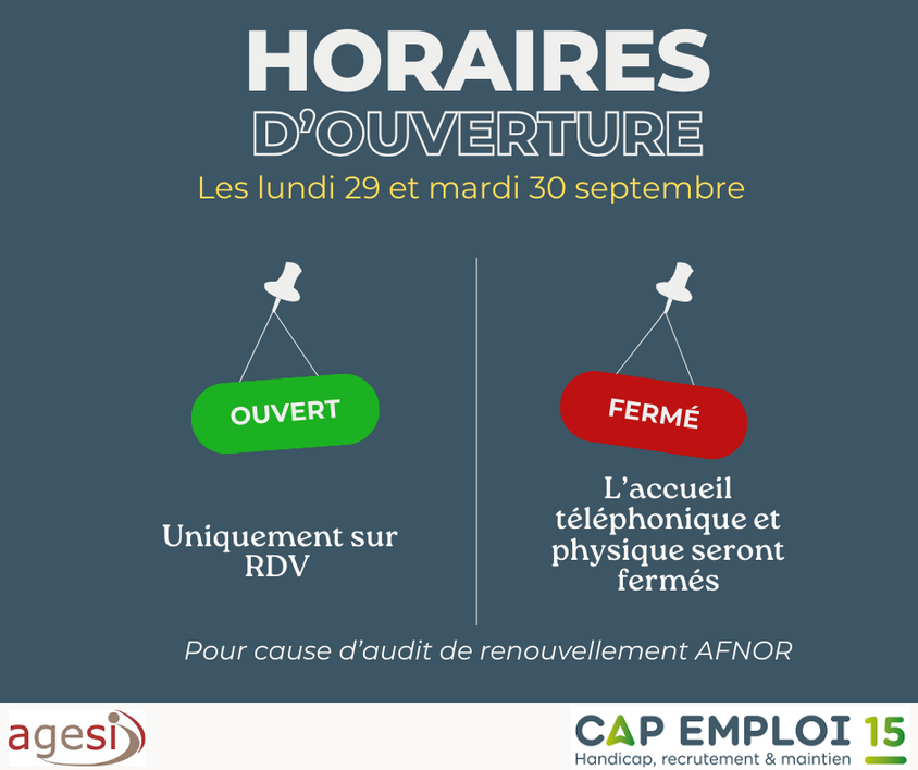 En raison de notre audit de renouvellement ISO 9001, notre accueil ne sera pas assuré les lundi 29 et mardi 30 septembre.
